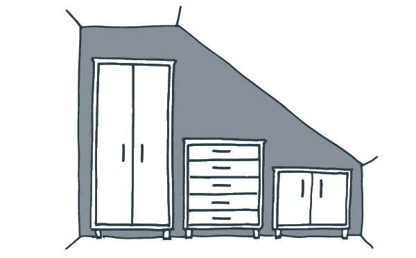 Les meubles standards, avec dimensions fixes, vous font perdre de la place sur les côtés, en hauteur et en profondeur.